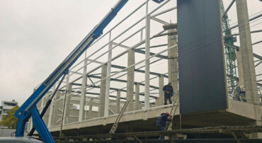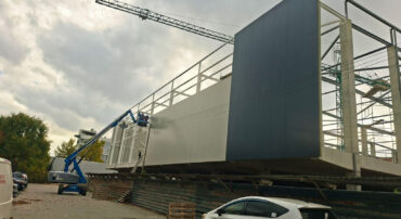 Надстройка – несущий каркас из стальных профилей с внешними стенами из сэндвич-панелей PIR 100 мм.