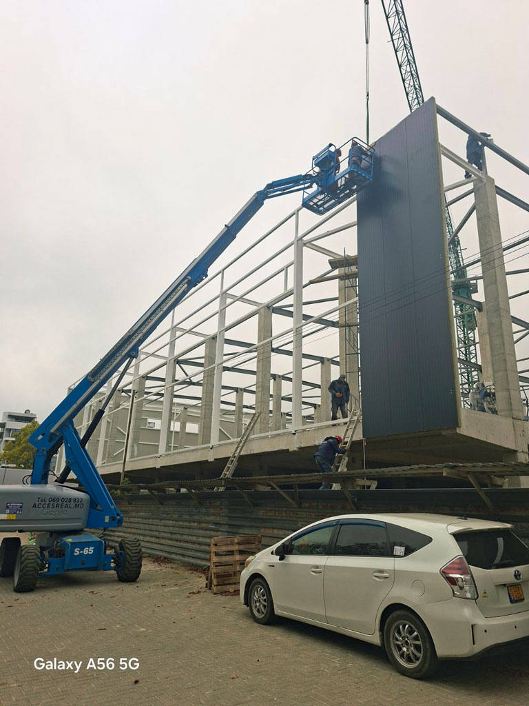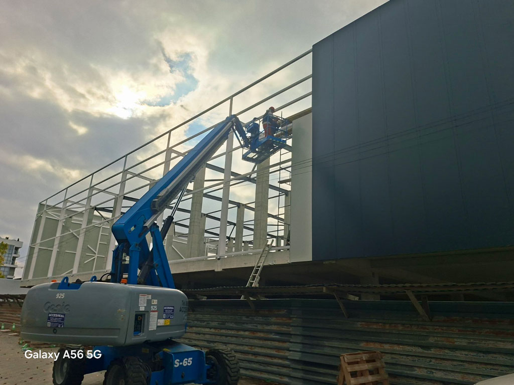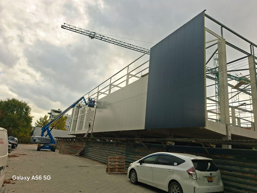 Надстройка – несущий каркас из стальных профилей с внешними стенами из сэндвич-панелей PIR 100 мм.